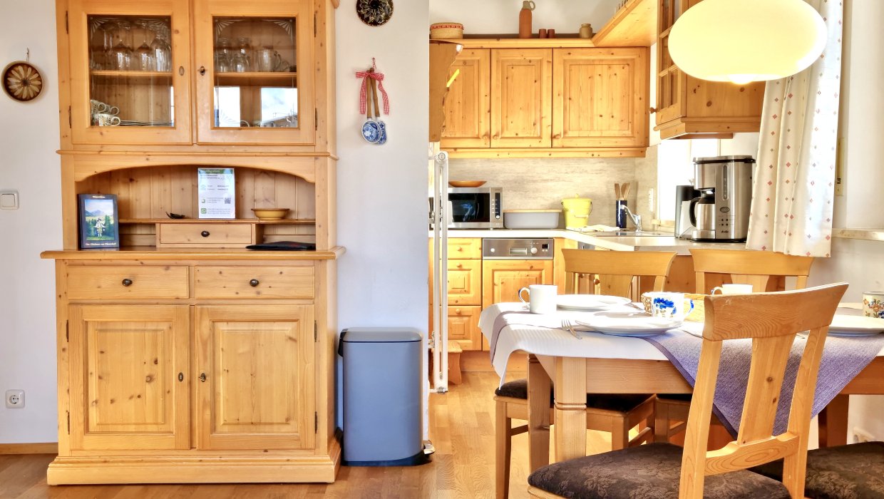 Das hell und freundlich eingerichtete 2-Zimmer-Appartement verfügt über ein Wohnzimmer mit Doppelschlafcouch (für die 3./4. Person), Esstisch, Farb-TV und eine komplett ausgestattete offene Küche mit Geschirrspüler, Mikrowelle, Backofen, Toaster und Kaffeemaschine.